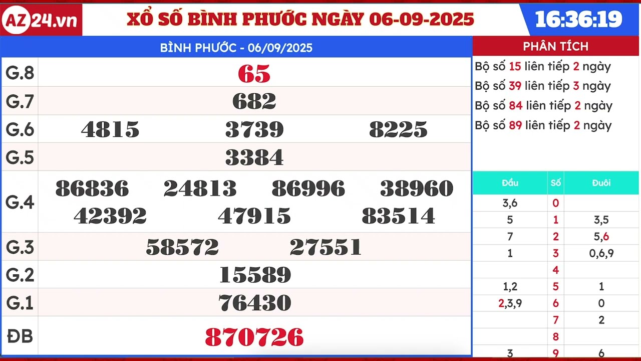 - Kết quả xổ số Bình Phước ngày 16/8/2025